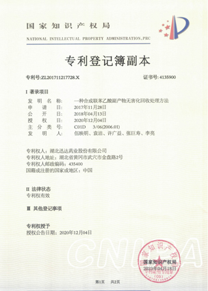 湖北迅達藥業股份有限公司是專業從事醫藥原料藥及中間體生產經營的國家重點高新技術企業,也是國家 4A 標準化良好行為企業、湖北省智能制造試點示范企業、湖北省國際科技合作基地、湖北省信息化與工業化融合試點示范企業、湖北省創新型企業、湖北省上市后備“金種子”企業、省級“專精特新”企業、上云標桿企業。公司被評為湖北省醫藥工業五十強、湖北省醫藥行業創新型企業十強、湖北省醫藥行業出口型企業十強、湖北省優秀企業、湖北省“重合同守信用”企業、湖北省模范勞動關系和諧企業、湖北知識產權示范企業、中國外貿出口先導指數樣本企業。